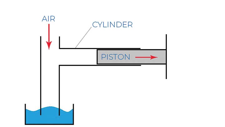 以同樣的方式,泵中的隔膜向泵體內和向外移動,與止回閥一起工作以吸入和排出泵中的流體。下面的圖 2 顯示,如果沒有止回閥,當活塞向外移動時,空氣會簡單地流入氣缸,從而阻止任何吸入。